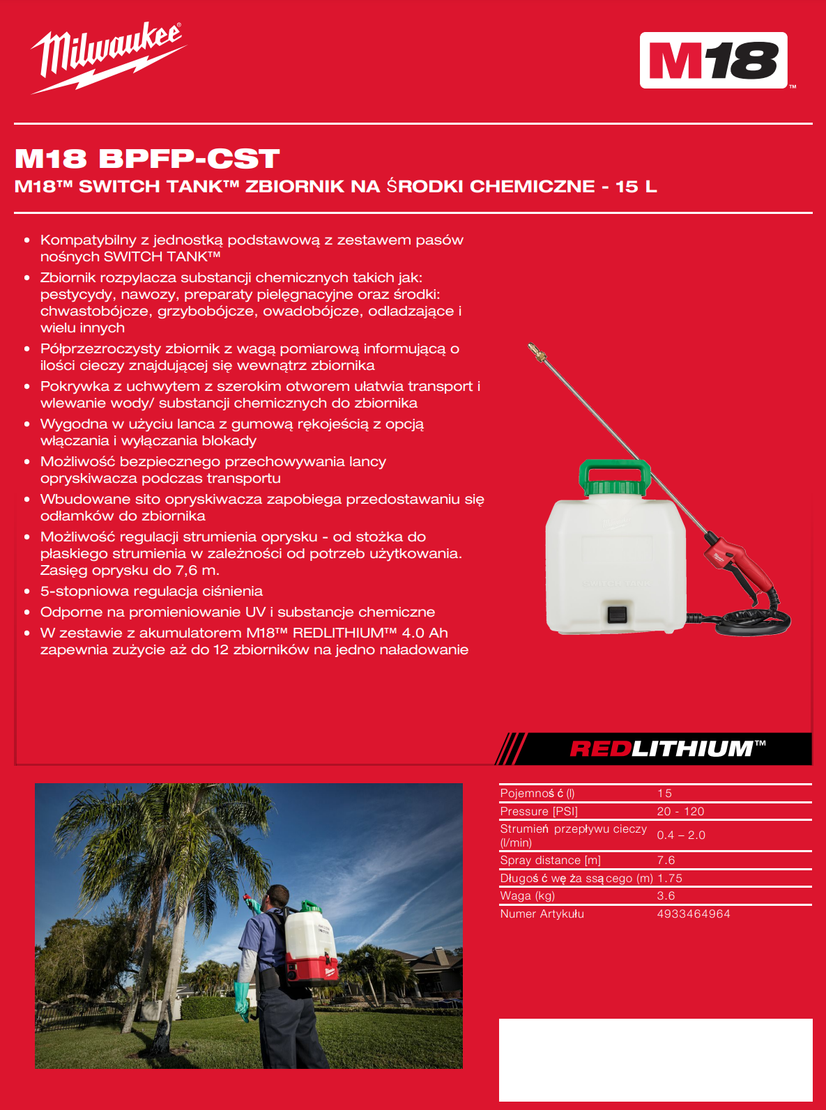 MILWAUKEE M18BPFP-WST Zbiornik wody 15 L